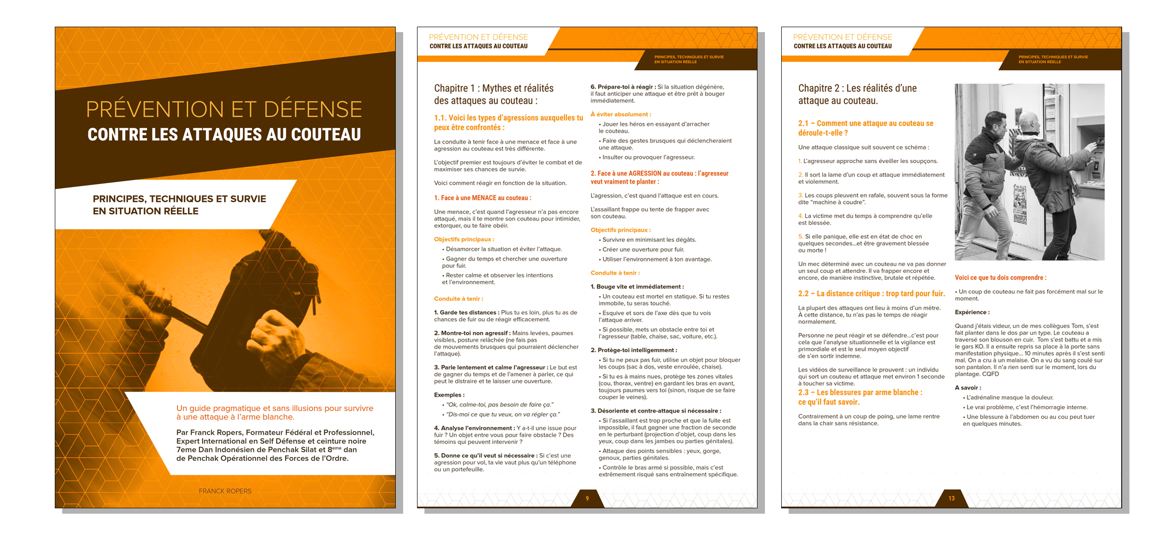 Ce guide est un concentré de vérité brutale sur ce qu’il se passe réellement lors d’une attaque au couteau. Pas de techniques de films, pas d’illusions, uniquement du terrain, de l’efficacité, et des méthodes pour survivre à une agression à l’arme blanche.