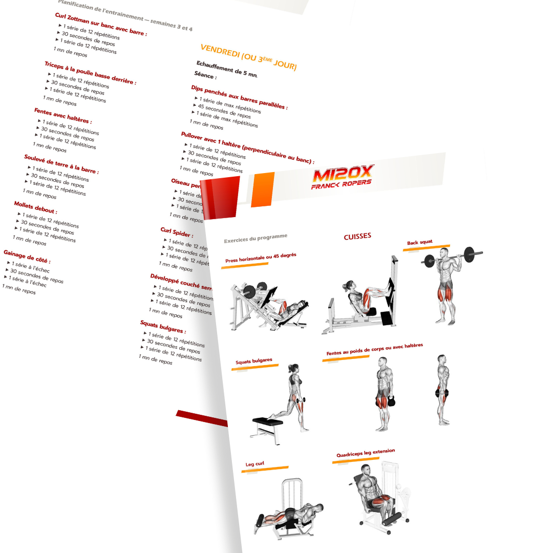 Avec le programme M120X, tu peux transformer ton physique en seulement 3 séances de 30 minutes par semaine. Oui, c’est tout ce qu’il faut pour des résultats exceptionnels, sans y consacrer des heures interminables en salle de sport !